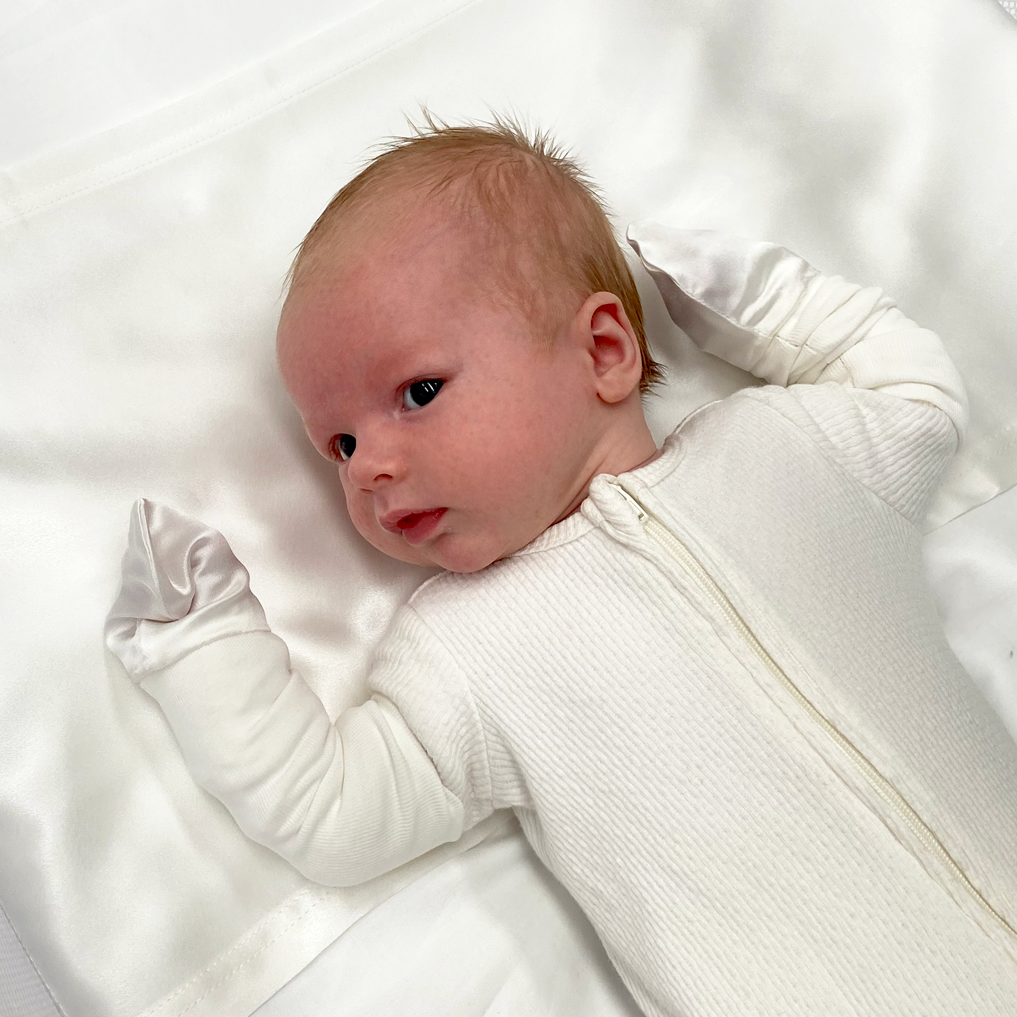 Sleeping on silk reduces the friction that causes infant hair loss, knotting and breakage and helps promote re-growth where bald spots already exist!